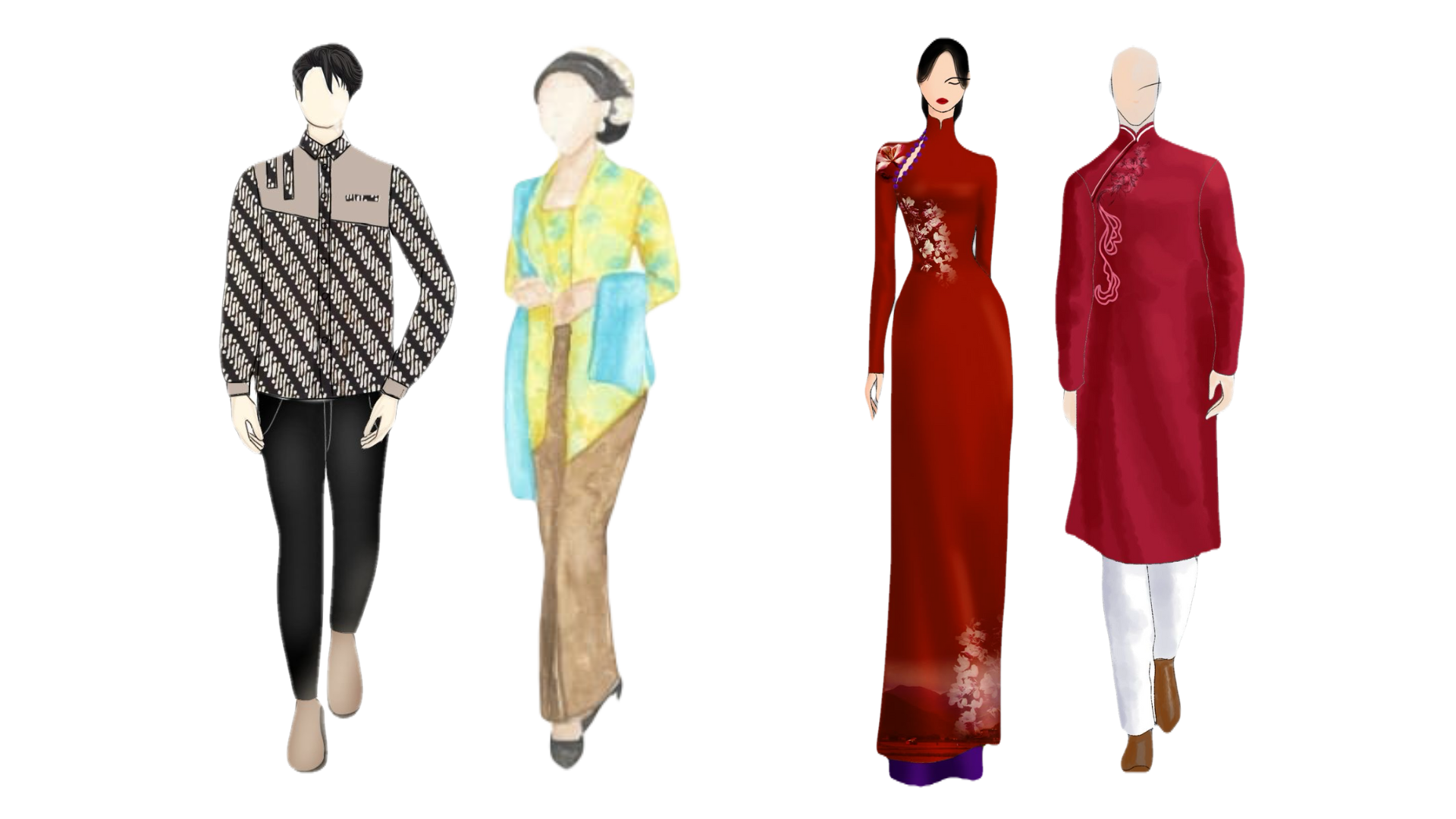 Female : Peranakan Kebaya / Cheongsam Male : Batik / Cheongsam